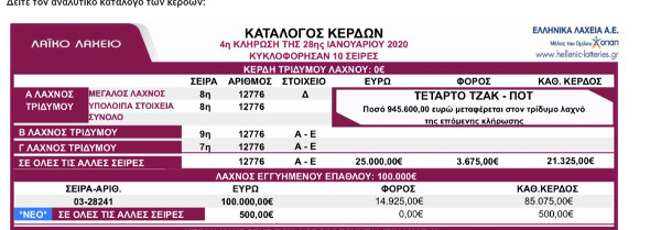 Το νούμερο αυτό είναι το τυχερό της Λαχειφόρου αγοράς που πραγματοποίησε η ομάδα μας και η κλήρωση έγινε σύμφωνα με του Λαικού Λαχείου την Τρ. 28-1-2020.