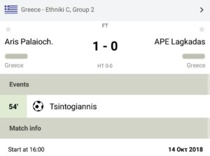 | 14/10/2018 | 2:00 ΜΜ | Γ ΕΘΝΙΚΗ | 2018 - 2019 | ΚΥΡΙΑΚΗ | 90' |