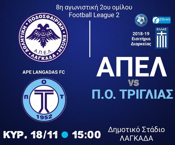 «Λευκή» ισοπαλία στον Λαγκαδά, ανάμεσα στην ΑΠΕΛ και την Τρίγλια. Στο πρώτο μέρος η ομάδα του Κώστα Βελιτζέλου ήταν πιο απειλητική, έχοντας φάσεις για να προηγηθεί, ενώ στο δεύτερο ήταν πιο μοιρασμένο και «κλειστό» ματς, με την ομάδα της Χαλκιδικής να έχει επικίνδυνες αντεπιθέσεις. Για τους γηπεδούχους απείλησαν οι Κυζιρίδης (4΄, 17΄), Ζαγναφέρης (27΄, 58΄) και Πολυζωίδης (42΄), ενώ για την ομάδα του Κώστα Γεωργιάδη ευκαιρίες έχασαν οι Σουάνης (47΄) και Ντούνγκα (49΄ και 75΄).